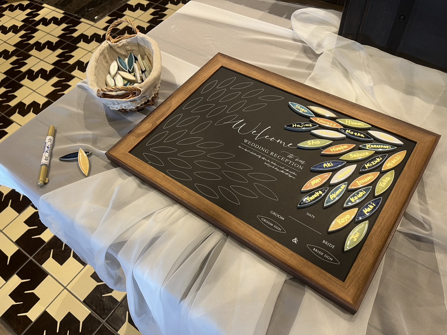 お越しいただいたゲストの皆さまにお名前を書いていただくものや